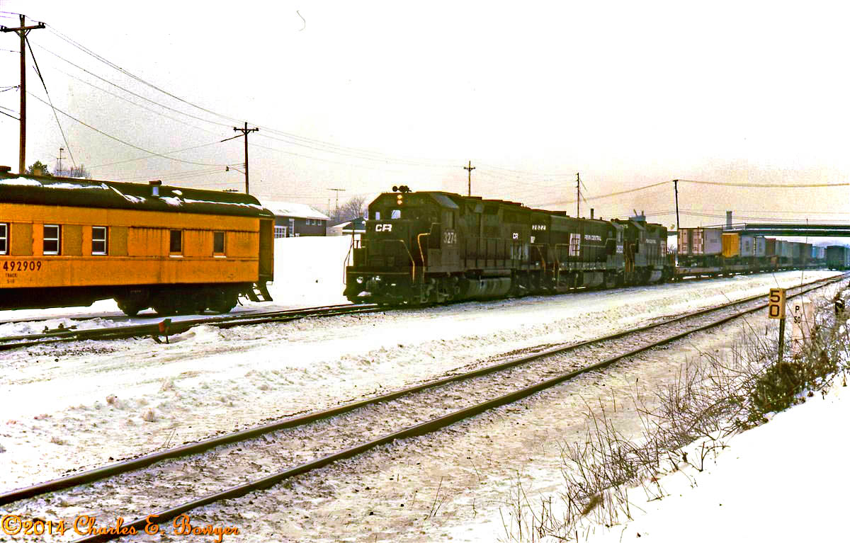 January 16, 1977. 3 PM and the temperature has risen to a balmy Zero.  East bound at East Palestine, Ohio.