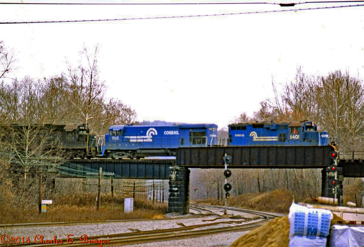1/24/1078. Power balancing move west bound at Market Street in East Palestine, Ohio.