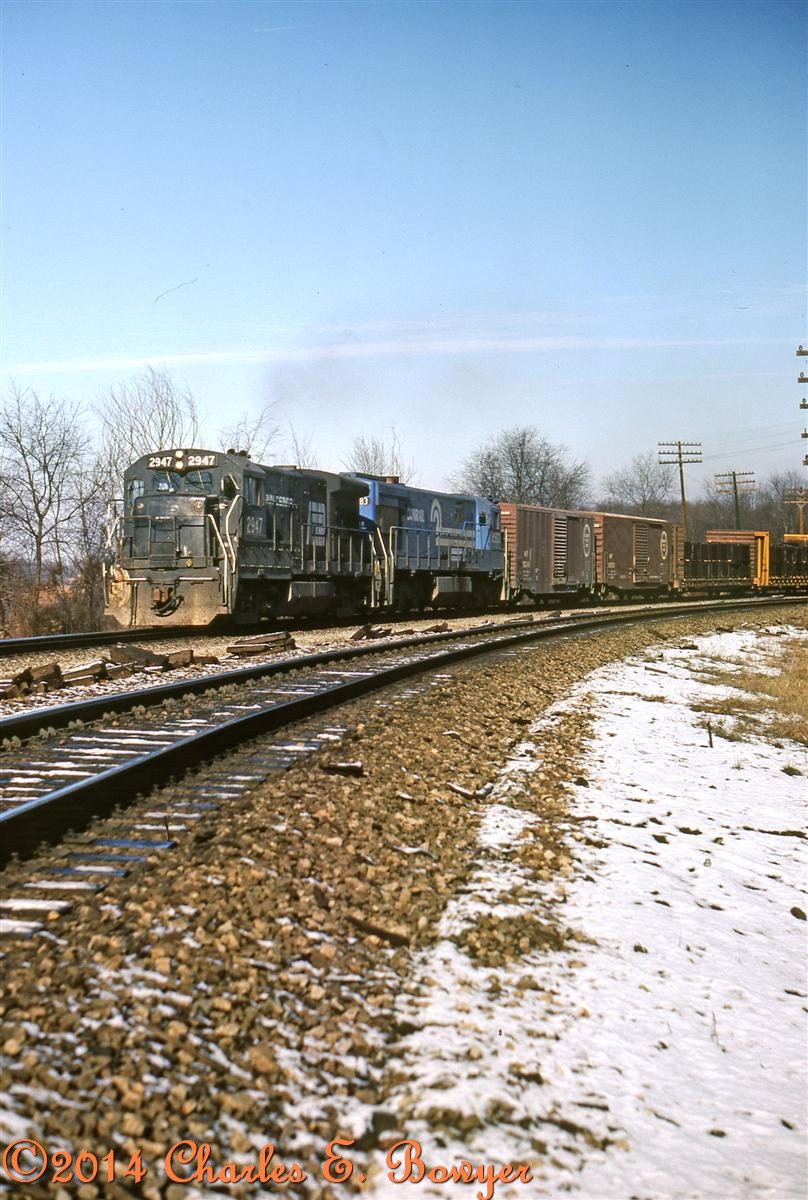 PC U33B westbound at Haggerty Road (just west of New Galilee, Pa) December, 1977