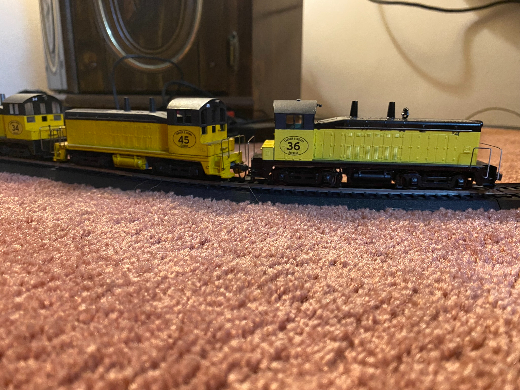 3 SW9's & 1 SW7 are in charge and are all online for just one little caboose. ( I couldn't get the entire consist in one picture so there is two to get the consist ) Matt