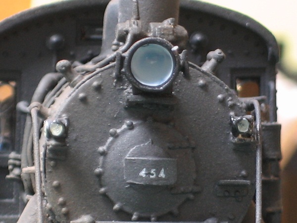 now It's on to the headlight. I ordered some small 12v lamps from the LHS, but they will not be in until the end of January, so I will have to make a stopgap solution for now. I painted the inside of the lamp white to act as a reflector.if you look closely you can see that I cut open the back of the lamp and drilled a hole in the smoke box front for the wire to pass through.