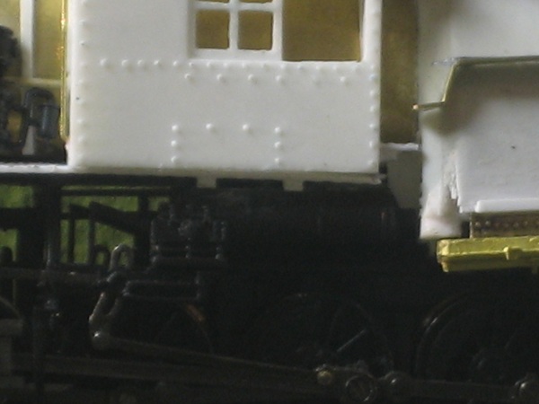 This picture shows that I have located the air compressor just in front of the break mans cab, and the bell at the rear of the firebox. Both of these detail parts were salvaged from the old models.