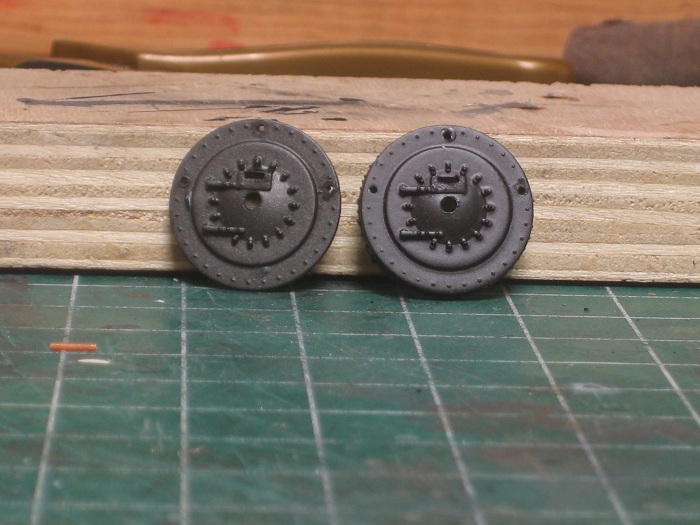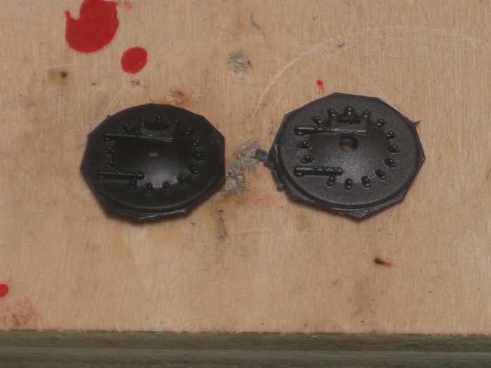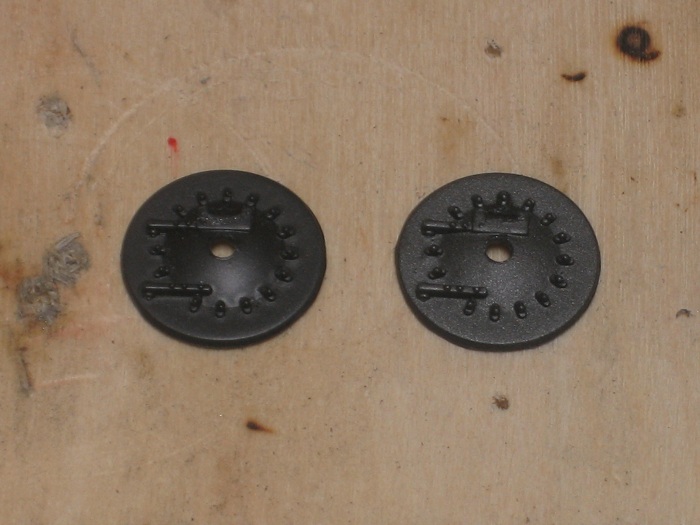 My new boilers are larger than the old ones so I will need to make new fronts for them. I decided to reuse the smoke box doors from the old boiler fronts and make a larger diameter front from brass.. I started by rough cutting the doors from the plastic casting with a small set of rail nippers.