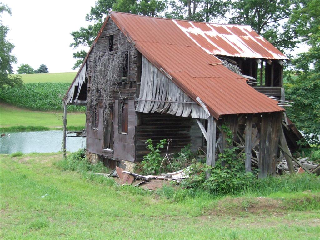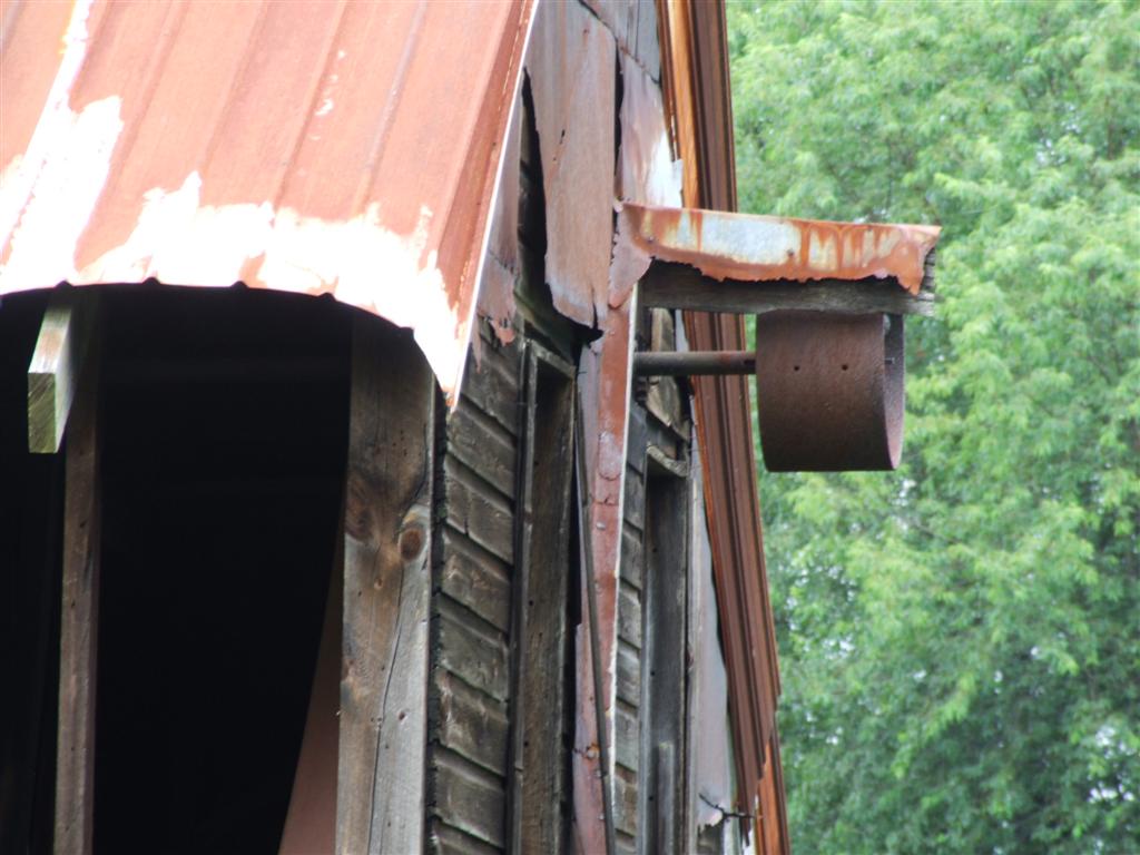 Well, I made a wasted trip to buy some paint today, but I remembered my camera so all wasn't a total loss. I have been traveling by this one since 1952. It was in better shape then. I stopped to get these pictures. I love the old curled wood and rusted steel. It even had an overhead belt drive so maybe it was a saw mill at one time.