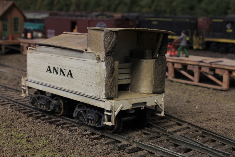 I think that that's one sweet-looking little tender, complete with rolled-top edges on the cistern, à la Norfolk & Western J, handrails and ladders all over the place, and with a water hatch worthy of a much bigger locomotive, along with a back-up light and a light for the deck of the cistern, too! As they say around these parts..."Beauty, eh?"