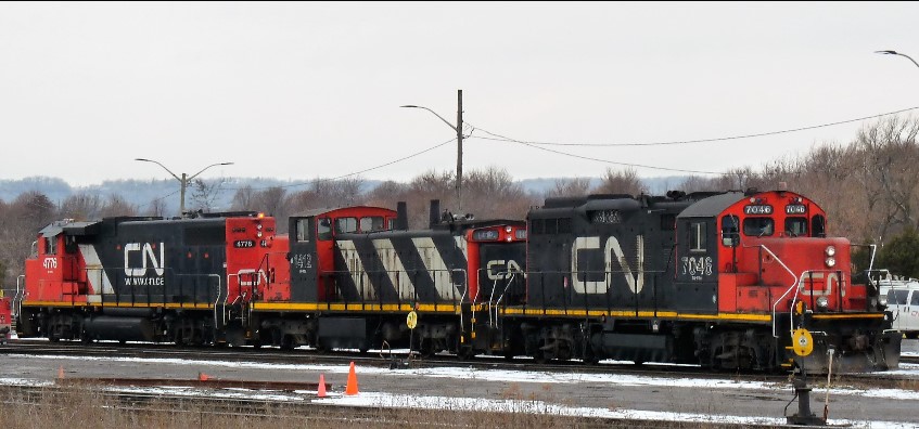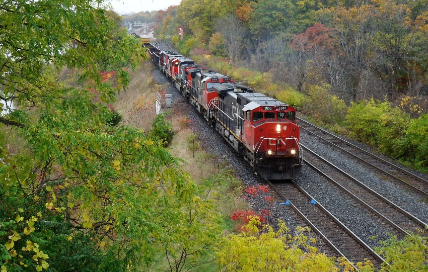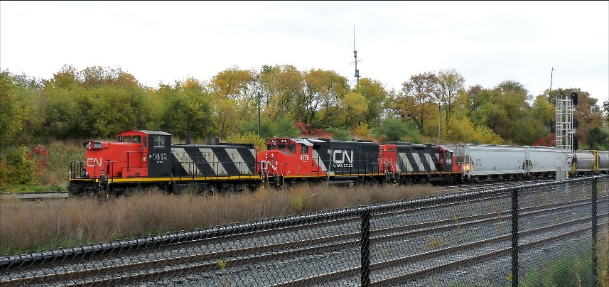 CN recently settled their labour dispute and the trains are rolling again despite backlogs and delays in the regular manifest services.During the strike some high priority trains were running with management filling the roles of striking conductors---this created some unusual traffic through Bayview as some trains were re-routed and the local rail-fans witnessed trains that usually don't pass through Hamilton.Unfortunately I missed all these re-routed freights.