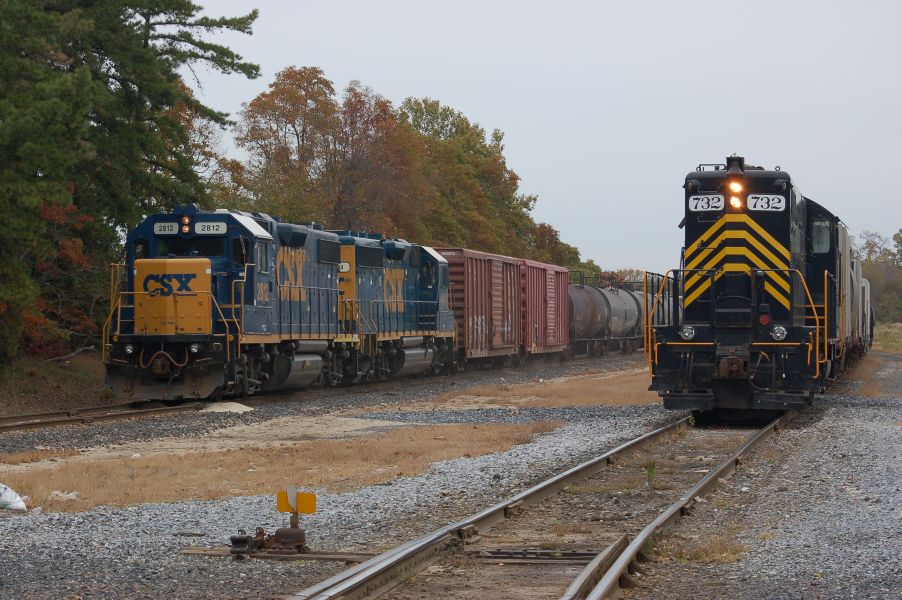 Conrail's MI-21 power at the yard in Millville, NJ. 10/13/11.