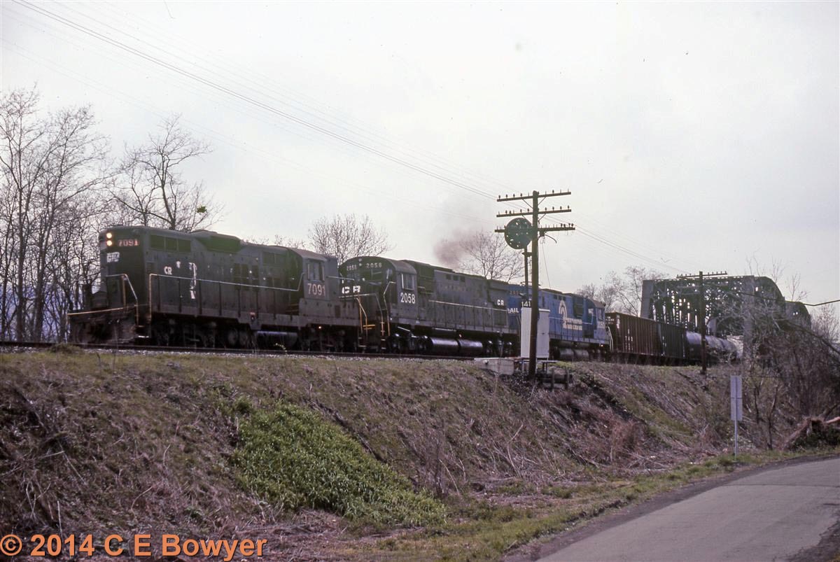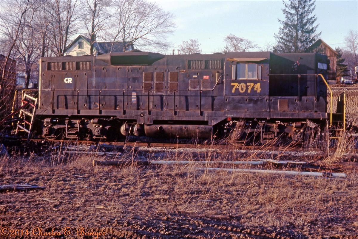 March of 77 and this  GP9 lettered CR locomotive still shows its heritage. East Palestine, Ohio