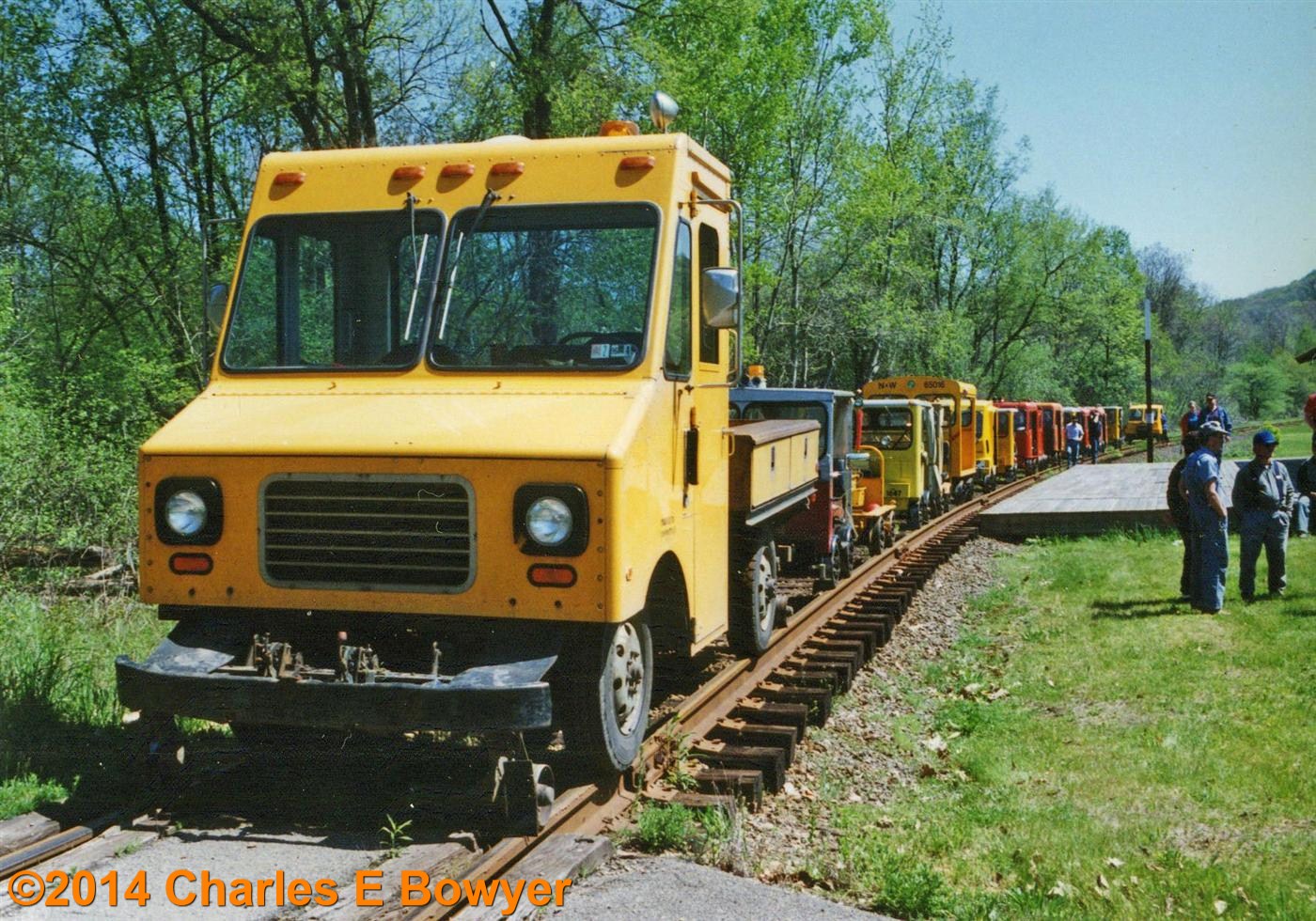 A work outing on the Oil Creek and Titusville Railroad.  May 6, 1995. Work clearing brush for a while and ride the line 3 times over the weekend.