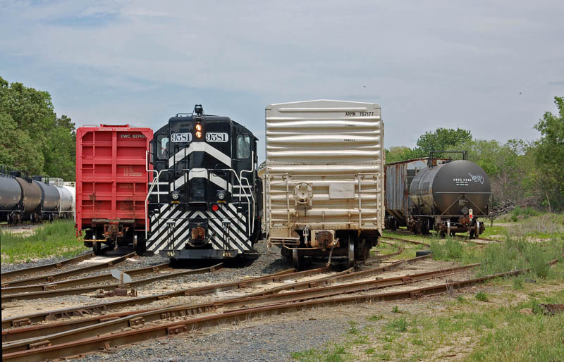 Belvidere and Delaware River Railway SD9 working for the Winchester and Western at Millville NJ, on 5/18/09