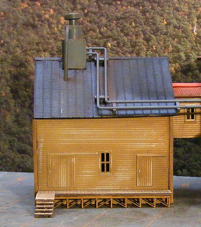 Railohio that will be a alleyway to a street on the other side of the building. It is way to narrow and to low for a train to fit thru. Pete the building is a bash of mainly the Walthers Sunrise feed mill and the AMB N. Hitzeman feed mill with some other parts thrown in so I'm not sure where it came from but it made the building to tall in relation to the track on a grade behind it and was really screwing up how things "down in the valley" looked compared to the "town up on the hill" so it had to go.