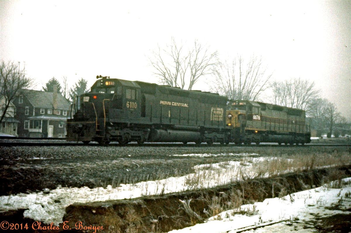 "Leased locomotives remained on the property throughout 1977, with Chicago & Northwestern, Missouri Pacific, Southern pacific, Southern Railway, Union Pacific, General Electric, Morrison-Knudsen, and Precision National supplying locomotives of all descriptions. Help, in the form of GP35s was obtained from MP, SP, and CNW; GP9s and GP9Bs came from the UP; and Southern F-units and GP30s eased motive power shortages. The Chicago & Northwestern also lent GP30s, SD40s, SD45s, and their only GE's, U30Cs 930-936, plus at least one GP9. The mix of motive power was muddied still further for a period of time with traded in former Frisco high-nosed U25Bs from General Electric, and Morrison-Knudsen's two home-built TE53-4E units (heavily rebuilt U25Bs of Union Pacific heritage with EMD Prime movers) that were kept on Conrail trackage. Precision National, always a source of used motive power, leased Conrail an assortment of EMD power, mostly first generation Geeps."