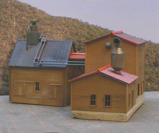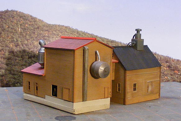 I had to order some more window glazing so not much new. I did put a sign on the building and have test fitted it to the layout ( ground is still green styro Goldth ). Not sure I like the size of the collector or whatever it is on top of the lower red roof so I haven't glued it in yet.