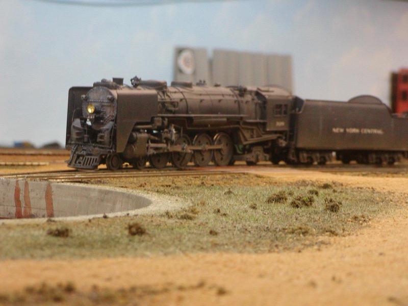 Hmm, you know, I think i'll make a seperate post in the Upper Berth about this, as I want to solicit advise from as many folk as possible. I will post here a shot of the overall engine servicing area as it looks today. The cardboard mockup of the office bldg is in the distance, you can se the amins going beneath the bldg, and that I've brought ground cover up ad far as the coaling tower. I have a diesel sanding and fueling towers to build before I finish that area.