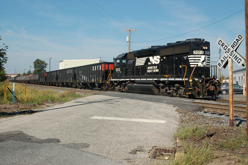 A NS GP40-2 on PA-40 switches cars at Paulsboro, NJ on September 7, 2010.