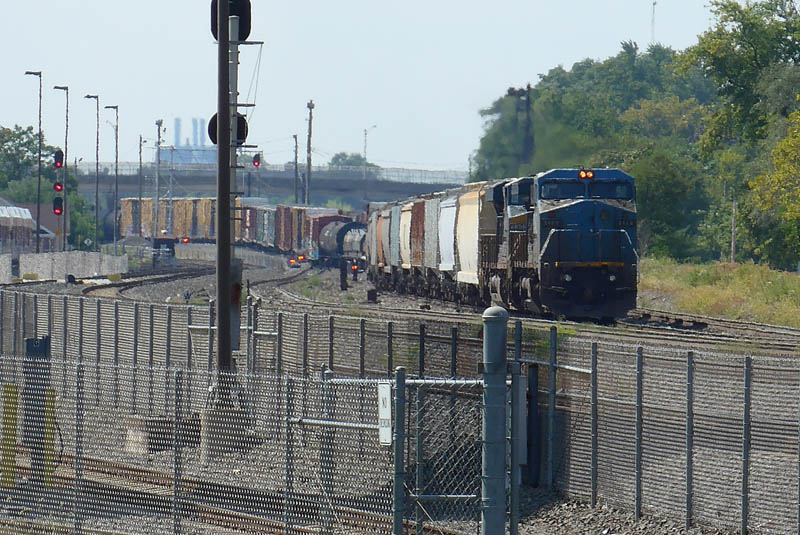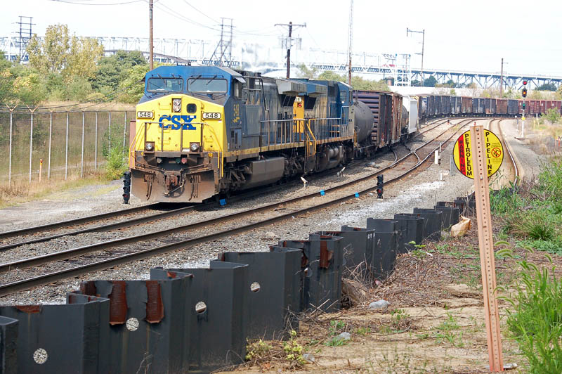 CSX Q418 has just come off the Delair Bridge that crosses the Delaware River between Phila, PA and Pennsauken, NJ on September 15, 2009. It is making its way to the Conrail Shared Assets Organization Pavonia Yard in Camden, NJ.