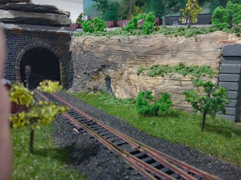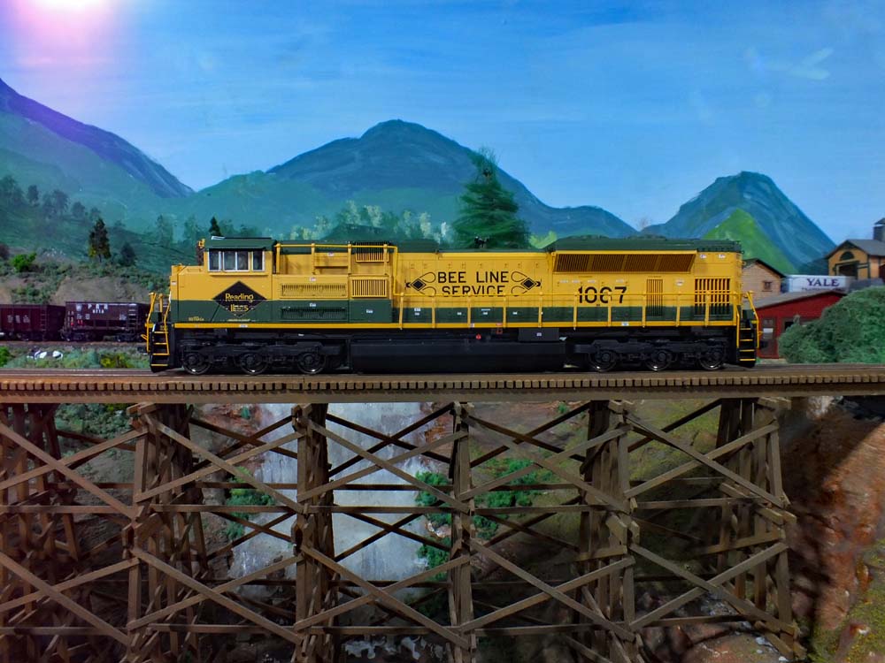 I always enjoy your layout photos. Your backdrops really add to the scene. Heritage unit looks massive! and that's a nice trestle too. That caboose looks brass? --hillyard
