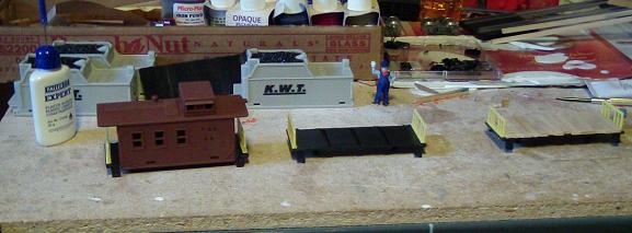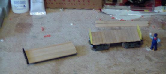 this series of pics shows how the original caboose floors/chassis are unacceptable in appearance so They will become shorty flats with wood plank floors Icon_lol Maybe some more progress in a few days.
