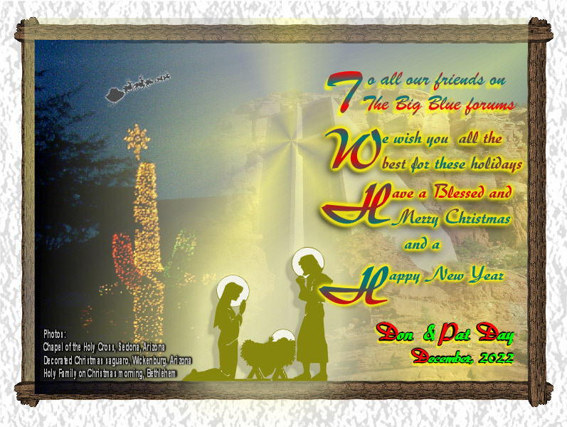 I wish everyone here a Very Merry Christmas and hope the weather in your area doesn't screw things up with that. I heard yesterday that there were some 8,000 flights canceled. One guy they talked to on the news said he was going to rent a car at $400 a day to drive his family home since they were stuck in the Phoenix airport otherwise. Prayers for everyone traveling right now.