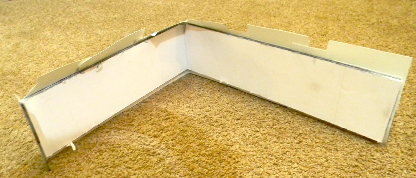 Pinned the first story in place to get an idea of scale and how many of these stories I'll implement vertically - I'm going one story at a time with only a basic concept in my head.  After I get a full wall section together, I'll reinforce the whole deal with foam board supports which will join all of the walls and roofs together.