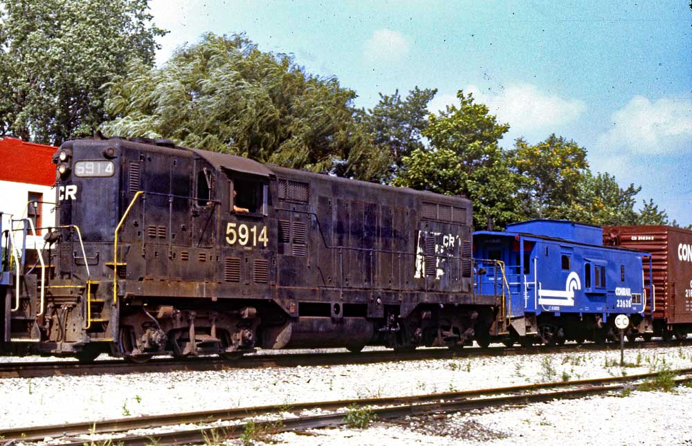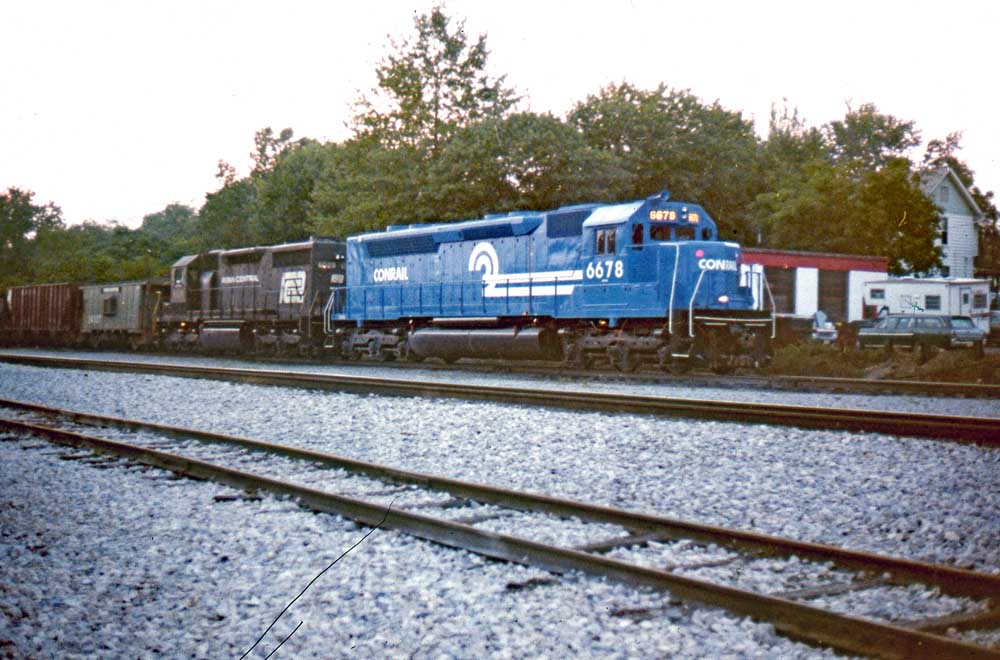 August 25, 1977. A late day shot of a westbound crossing Market Street, East Palestine, Ohio.