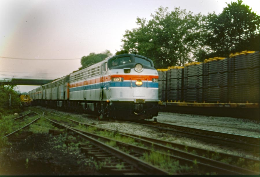 May, 1977. Amtrak 40, The Broadway Limited at McRoberts Road, Darlington Township, Beaver County, Pa.
