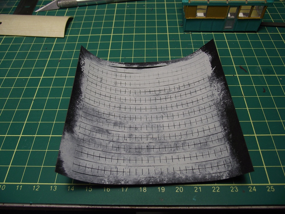 The shingles are laser cut on black paper. I sponge painted them with a light gray.