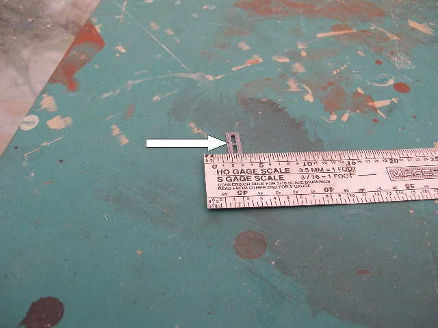 Before I cut out the wall, I will measure and cut out the opening for the window. This will give support when cutting out the window,and prevent damage(It does happen) such as breaking the wall. I'm using Grandt line windows that came from their Sample Box bought a couple of years ago. The long, two pane windows were great for those ones you see in public restrooms. The windows come with a flange on the back and window trim. I measure the flange which gives me a rough dimension for the opening. Some folks will cut the wall up like a jigsaw puzzle to remove the opening, then put the wall back together. I tried that once and didn't like the results.