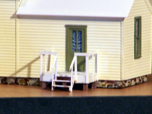 The original porch works because it allows access to the door, with room to step out of the path of the door's swing as it opens. It's primarily an entry porch, and not intended for sittin', except for, occasionally, the steps.