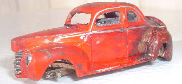 Thanksfor the enthusiam & kind words , It takes another modeler to appreciate what it takes to wreck a car-- non modelers think you just beat them with a hammer or put them in a vise--- I've had people say exactly that when they see them , or when they see the burned out 50 Ford ask if I did it with lighter fluid or gasoline !!