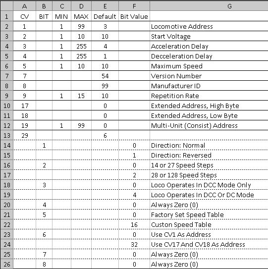 OK, it is starting to make some sense. Stand by to give us more lessons. Thanks for the information on CV 29, although there is a good program available from BLI that will calculate 17, 18 and 29 for the long address, and I did have a diagram for CV29 somewhere. You have been very helpful but please stand by I was afraid to ask for help being thought stupid, but you are only stupid if you don't ask
