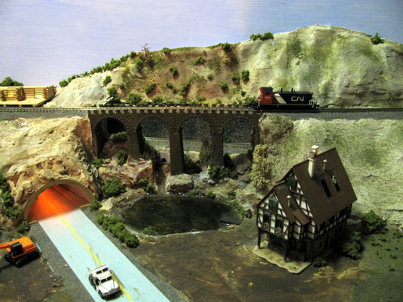 Here's the problem: some of the track is inside a tunnel (now don't ask me what that wire-like thing is sticking out of the tunnel portal - have no idea)