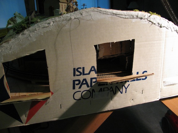 Discovered I need another access hole - since the "fascia" is made from cardboard, I simply used a knife to cut another hole, hinged at the bottom: