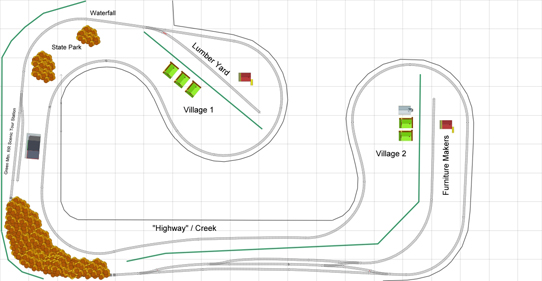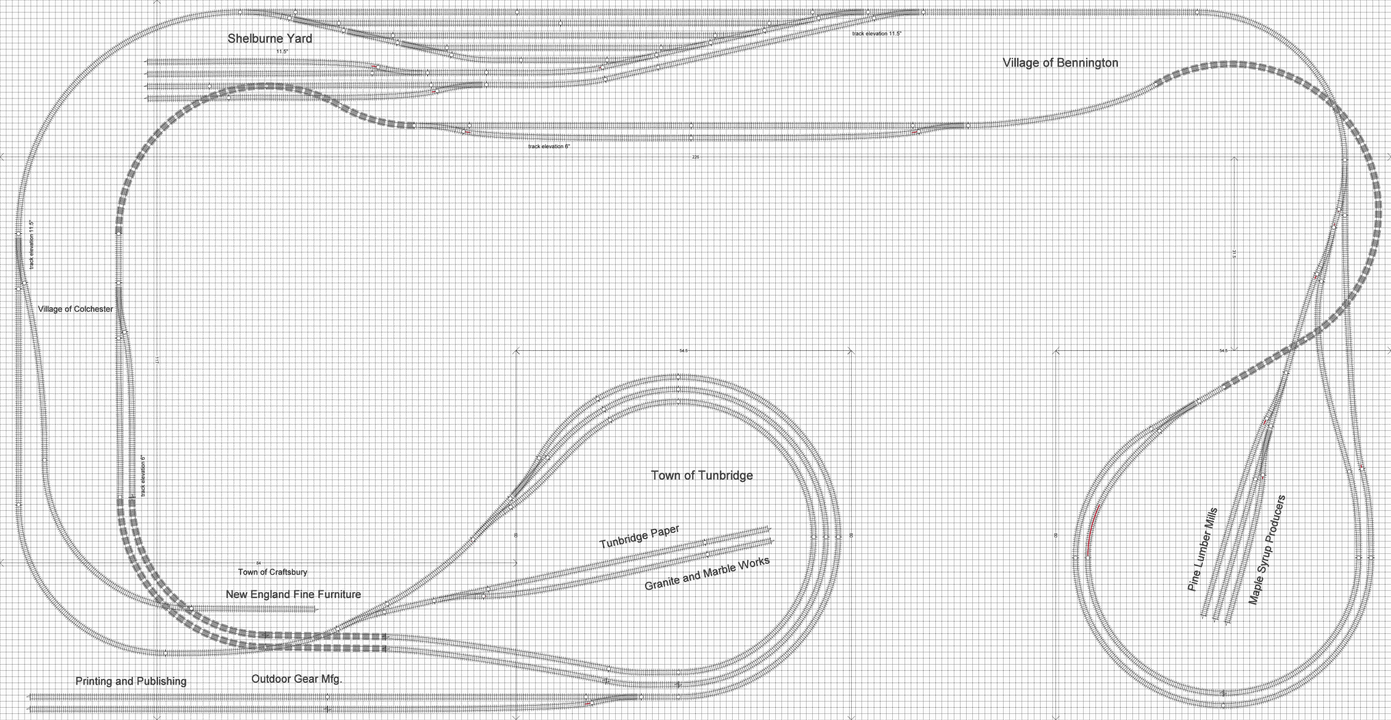 Thanks for the comments, Stein. I gave your ideas some thought as well as my own continuing ideas some thought and reworked some of the track. Basically the inspiration for the scenery is based on my trips to Vermont and New England in the Autumn... lots of color and that look that while it is 2011, it could still be 1896... With that in mind, the industry on the layout will be timber, syrup, paper, and granite and marble. The time period could be the 80's - today... I am not so much worried about replicating a time period per se, but more of a broad brushed "modern" era... in other words, freedom to mix things from the early 80's right through today with complete artistic license and no regard for realism as far as period goes. I thought about what industry might go where so I picked some town/village names in Vermont and gave some names and faces to the industry.