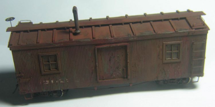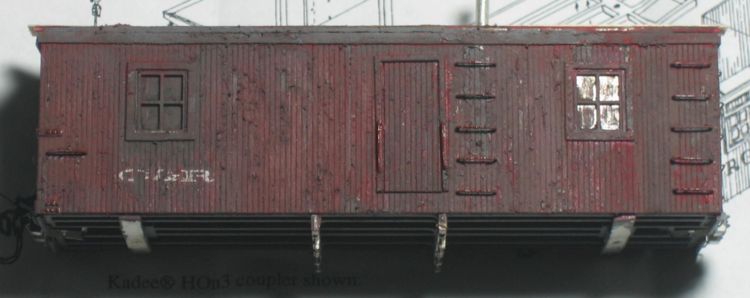 This is an Sn3 Rio Grande Models kit of an RGS tool car that I built for my Catskill & Ramapo RR. I wanted to paint it and weather it, but wanted to take it one step further. The 'rubber cement' technique is really easy to use and results in an out-of-the-ordinary look for model weathering. I first painted the wood model grey; this color is the base that will be exposed as weathered wood where the paint had peeled off. Next, I added dabs and strips of rubber cement in the areas that I wanted to have exposed. After the rubber cement dried, I painted the car in its final color and allowed the paint to thoroughly dry. Next, I took a blade and tweezers and pulled the cement off exposing the 'greyed-out' wood. The final step was to add weathering powders to tie it all together. Looks good and easy to do!