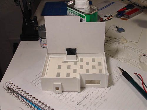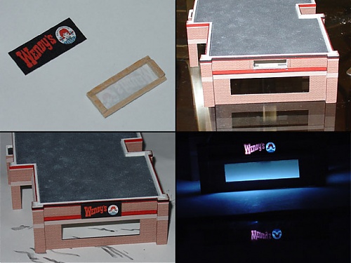 Ok, as promised, I did work a little bit on the Wendy's today. I wanted it to have a back-lit sign so I had to think up a way to do it as small as possible. Here's what I came up with: