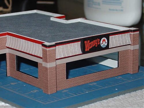 Started working on the faux roof that is trademark to Wendy's. It wasn't as hard as I thought it would be. It's just built up stuff of card stock, poster board, and paper.