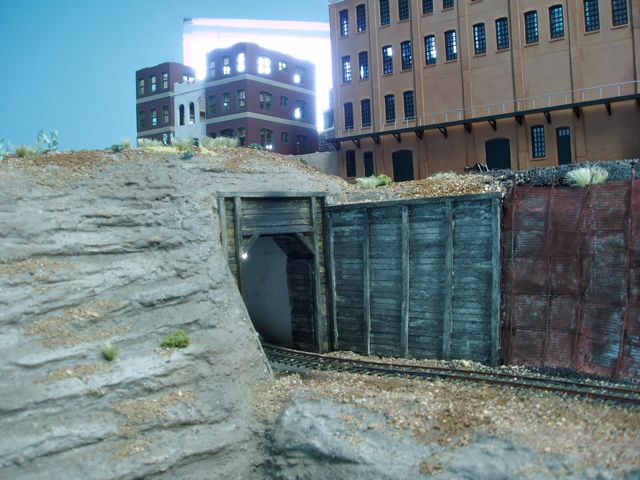 I plan on building a hotel on the flat area to the left of the large company store. I may place a small park in the flat area above the tunnel. The area to the right of the tunnel portal will have a wooden retaining wall up to where it meets the metal siding along the edge of the slag dump.