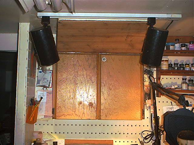 For lighting, rather than fix it in the booth, I use two desk lamps on pantograph-type arms, one on either side of the booth. It's easy to adjust the lights' positions to suit the painting task at hand, and the bulbs don't get covered with the overspray, either.