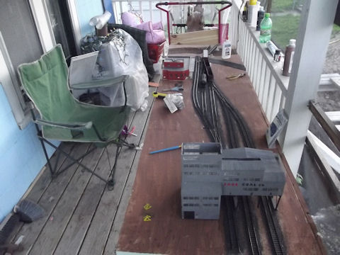 Im out for a summer and well crappy weather layout, Its built on 2x8 sheets of foam 1inch and 2 inch. The railroad is set to be a 2nd class shortline road that is served by conrail interchange track at Kenwood and via car float at Hudson Bay. The HBL has industries at Huson Bay that consist of Hudson harbor, Remington foundry and Hanlin casket co. Kenwood consists of Midtown construction, Team track, Moore & company and the MRH cerial factory. Here also is the engine and car grounds. Recently the HBL bought an abandoned line from the Short Creek Line that has 2 industries Burton chemical and Jade coal. So with this said you can find a spot set out a chair and prepair to see just about any rail car pass by you and if rail action is slow you can drop a line in the two creeks in the area and try and catch big Wally.