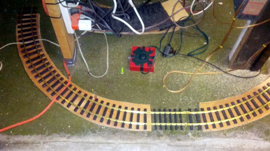 This is the worst part, crawling around under there assembling the tracks in order to take the measurements, so I can cut the straight lengths of wood to join the wooden corners (curved track) together.