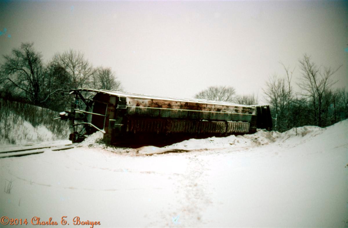 I came up with the idea for this thread yesterday when I drove past a small derailment. So post all your train wreck / derailment pics here (full scale or smaller).. Just make sure that you post pics that you have taken, anyone can repost from an internet search.