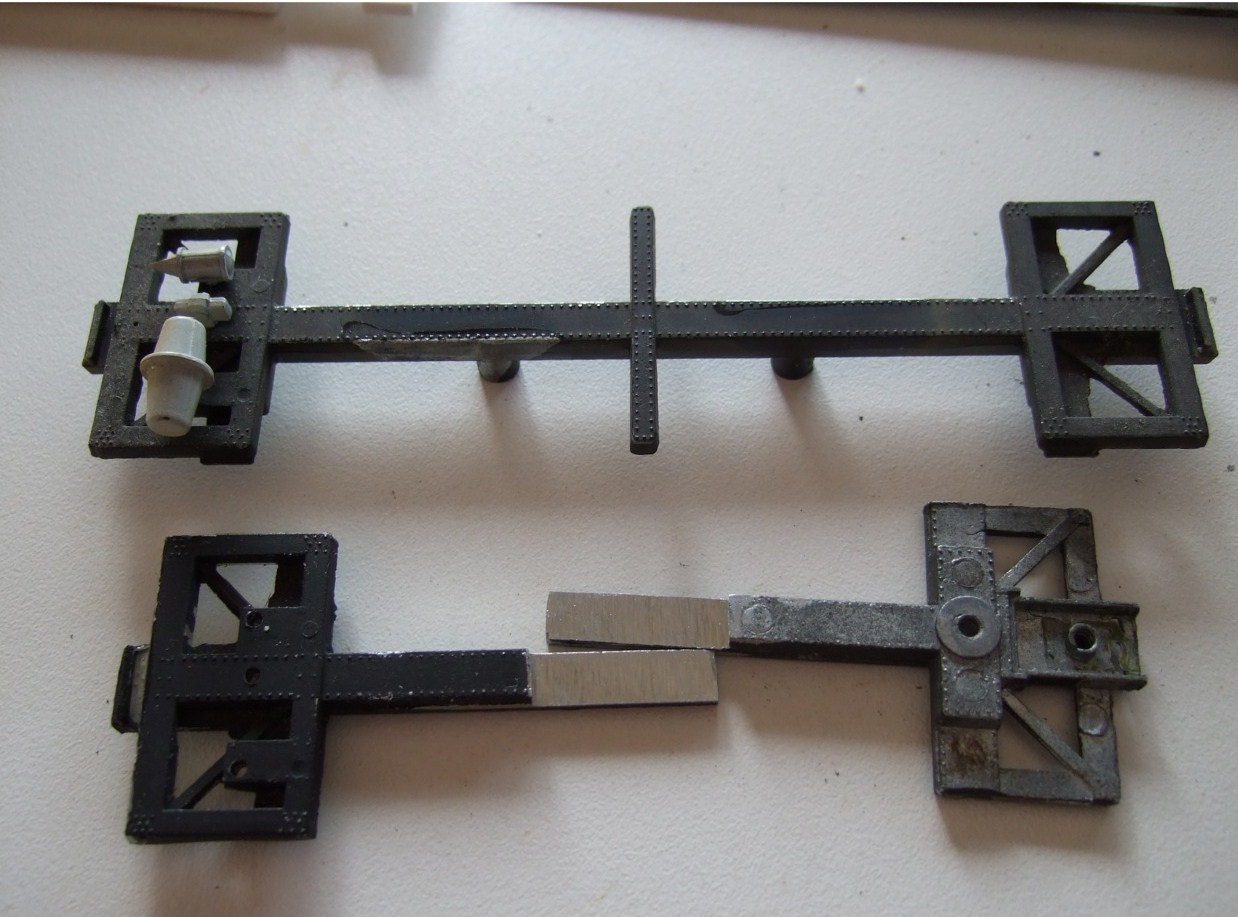 A Cautionary Tale!!. As the roofs were already glued in place I used lead bird shot to bring the cars up to the recommended NMRA weight using the same adhesive I’d used many times before. Now I had read before that using certain adhesives to attach weights to cars could cause warping to the plastic carbody but had dismissed it as “how sad, too bad, I’m alright Jack, I know what I’m doing”, so it should come as no surprise that “pride comes before a fall” and the first car developed a soft and soggy bottom. As a consequence, and after having figuratively kicked myself several times, I decided that I should have listened to those who knew better and so used caulk to attach the lead shot to the second car. After about a week the plastic hardened up again and as the metal under frame does all the work I got away with it though the warping is obvious with close scrutiny. All Luck, NO skill. :oops: