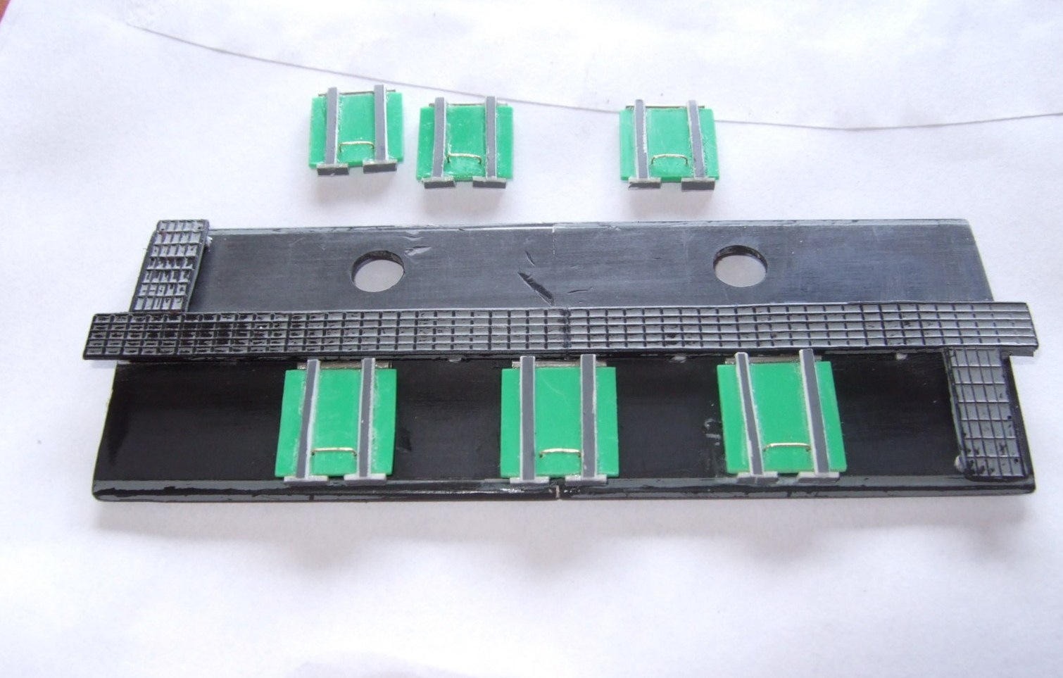 Why, oh why should life be so simple?? Guess what? Yes that “slippery slope” struck again!!! While complementing me, a gentleman whose work I respect, suggested that as I had gone to all the trouble on the latching mechanism, I should “replace those god awful sill steps” and suggested the detail parts I could replace them with. However I once again decided, as it would be quicker and cheaper, that I could make them from 26/6 staples, after all I’d done it before. Yeah, that pride thing again, because checking up on the prototype photo again I found that the sill steps had two rungs. Not to be beaten at this stage I plugged in my soldering iron and came up with eight of these.