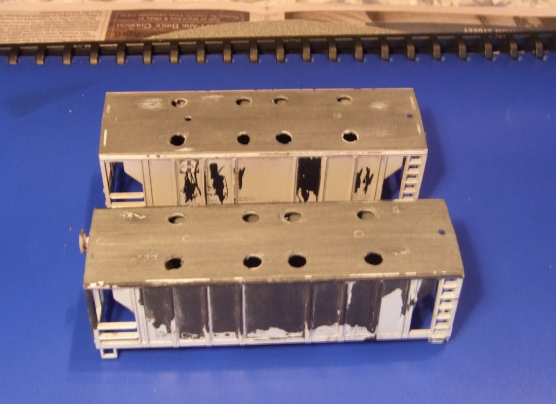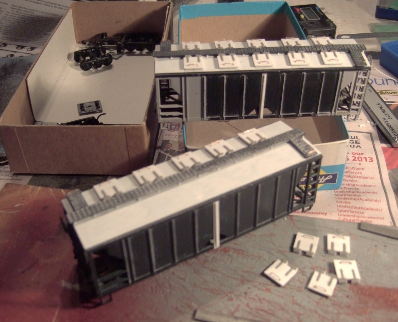 Here is the shortened hopper next to a MDC donor, what this photo tells me is that I should make sure all the wheels are actually on the track, and also brings up what doctorwayne has referred to in a recent topic as an “Oh! Oh!.....here we go, down that slippery slope” moment, as I have now  convinced myself that I need to rework that stock MDC roof walk. Wallbang