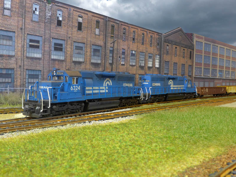 Great looking models and modeling. To keep it from turning into a steam fest here's another shot at Chestnut Neck. A LMS loco leads GEPC-31, a unit coal train to Atlantic Electrics' Perch Cove power plant. Bruce