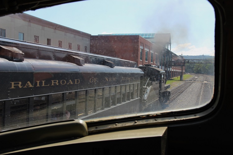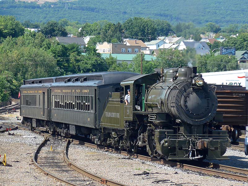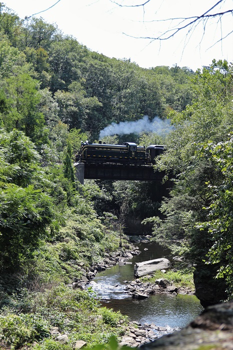 CNJ 1554 on today's railfest excursion to Moscow. Here she is heading east over the Roaring Brook at Nay-Aug gorge. Just a few feet past the bridge is the Nay-Aug tunnel.