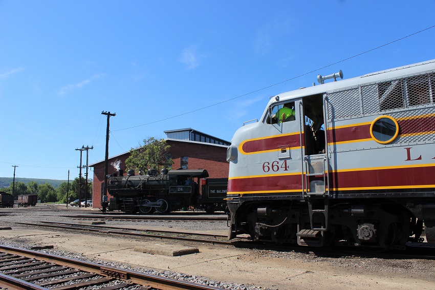 26 on a reverse move. Anyone know how to start this thing??? 26 through the window of 664. 664 about to head out to Carbondale. 26 on the south turntable lead with 664 ready to get it's train for today's excursion.
