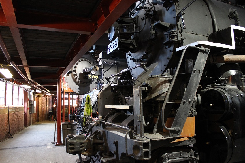 RDG 903 at the roundhouse. 1554 at the night shoot. 765 gets some flue work in the roundhouse, Two big Burks sit side by side in the roundhouse.