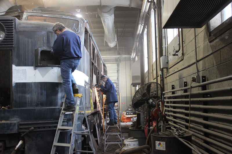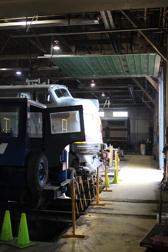 A few behind the scenes shots... 663 getting spotted to have the forward roof hatch removed. 26 under restoration. The cab was mounted just the day before this picture was taken. The FA-2 getting some TLC. Prints ,prints, and more prints.. some of the head scratching work behind restoring an F-3 b. F- units in the early morning sun.
